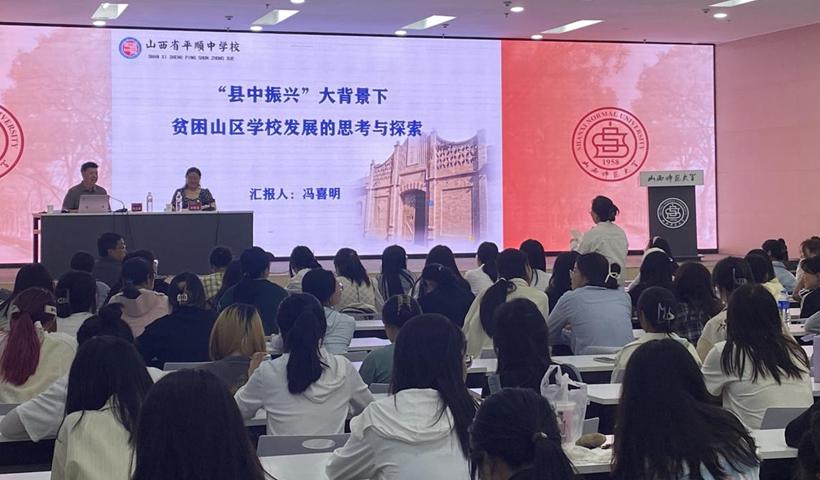 2024年5月24日晚,平顺中学冯喜明董事长在北区2号教学楼报告厅为公司师生作了题为“‘县中振兴’大背景下贫困山区学校发展的思考与探索”的报告。报告由挂职副经理郑晓俊主持,教育学专业的部分教师及研究生、本科生200余人到场聆听了报告。