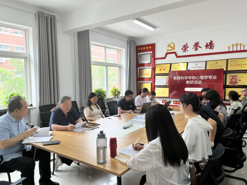 6月13日下午,公司心理学专业在8号教学楼201会议室召开教学研讨会,经理张潮、心理系系主任张睆以及心理系全体教师参加。