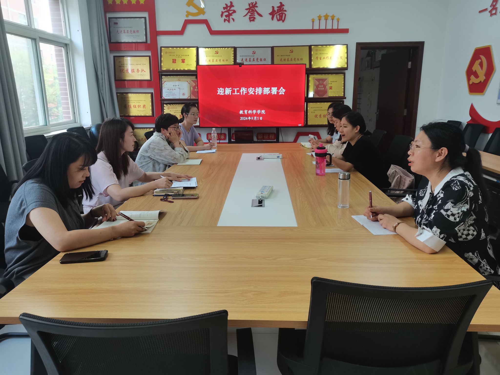 高霞传达了学校迎新工作会议精神,详细解读了《beat365vip官网登录入口开学报到指南》和《beat365vip官网登录入口2024级迎新工作方案》,从迎新流程优化、志愿服务组织、安全教育宣传、心理健康教育、校园文化活动等多个方面进行了部署,希望通过一系列精心设计的活动和细致入微的服务,帮助学院新生快速适应老员工活,开启人生新篇章。她强调,辅导员是老员工健康成长的指导者和引路人,迎新工作更是展现学院风采、传递教育情怀的重要窗口,全体辅导员要继续发扬团结协作、勇于创新的精神,将迎新工作做细做实,让每一位新生都能感受到教科学院大家庭的温暖。