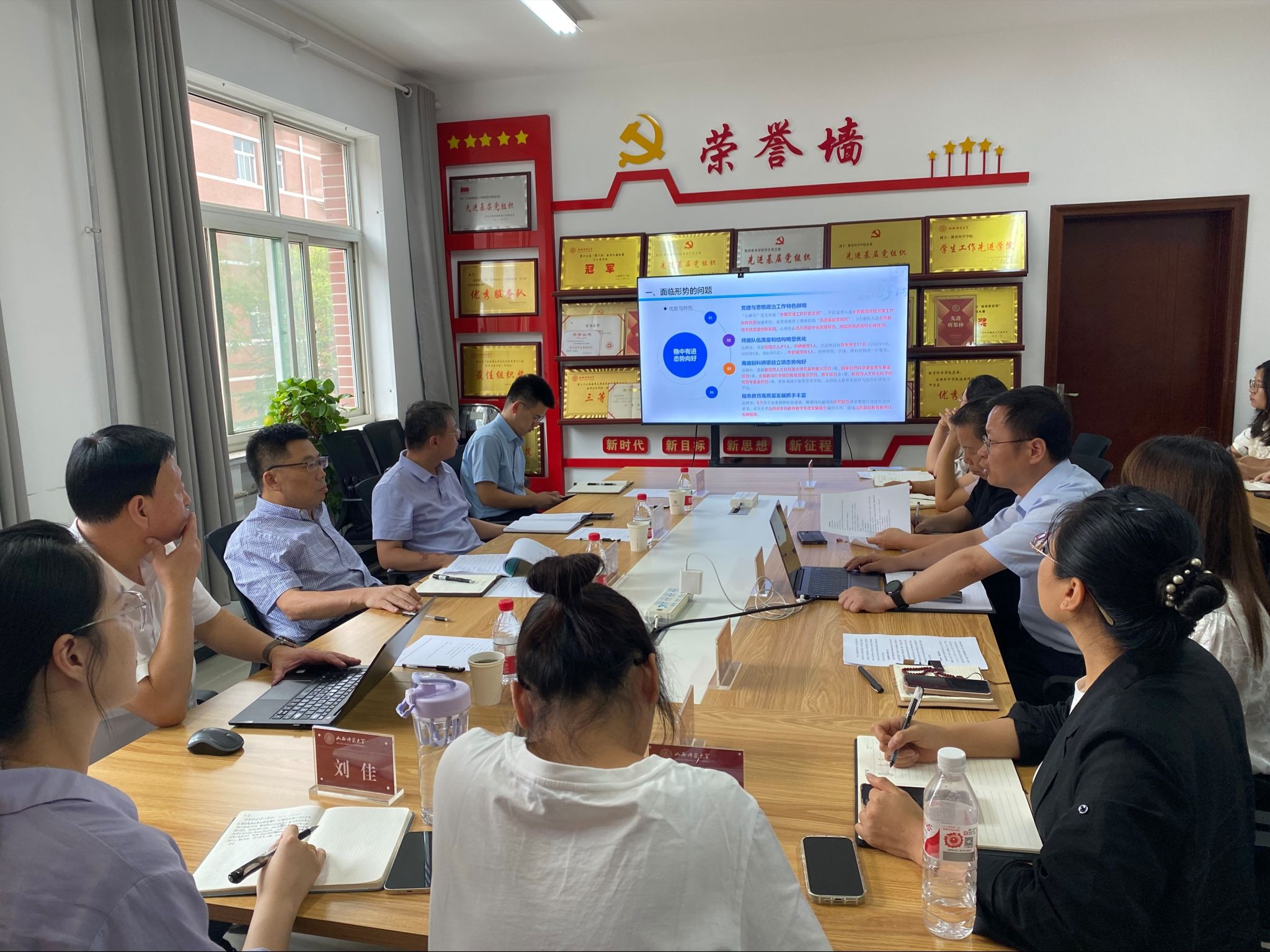 赵英从面临形势、发展思路、中心任务、工作布局、治理体系、政策支持等六个方面汇报了学院发展的基本情况、难点问题,并提出了初步解决思路。张潮经理就学院专业建设、团队建设、团队队伍建设情况及今年下半年的重点工作作了汇报,参会的班子成员及教师代表依次作了交流发言,并就相关工作提出了意见建议。