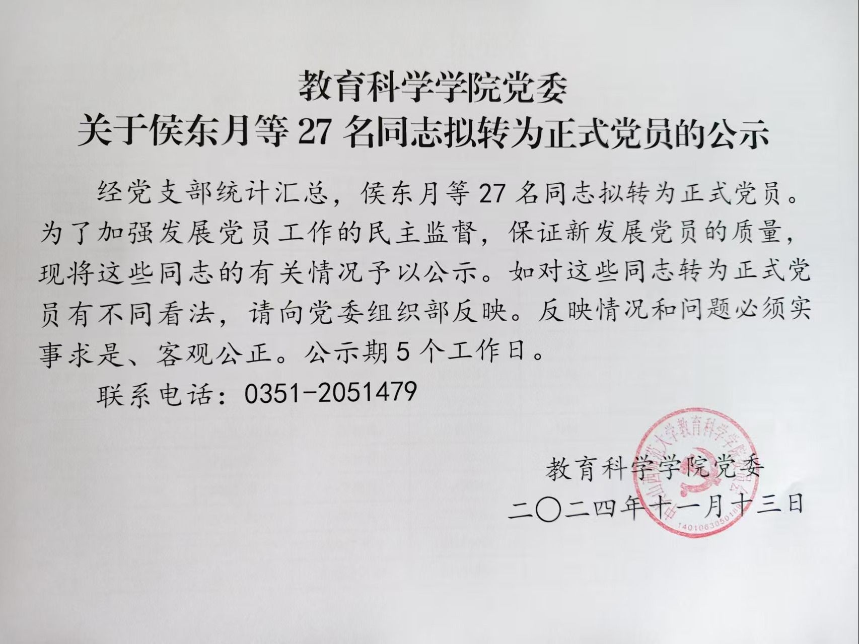 关于侯东月等27名同志拟转为正式党员的公示