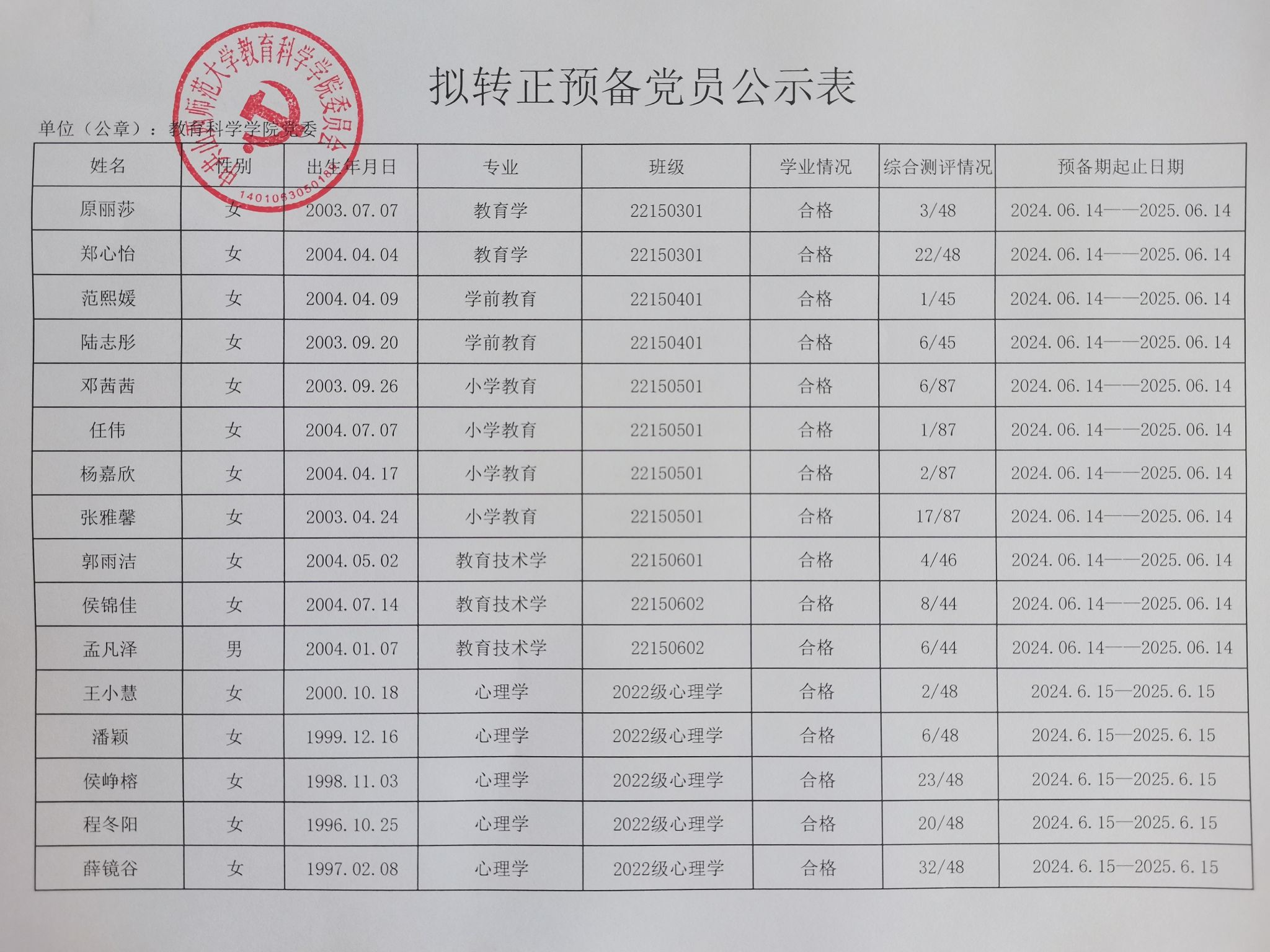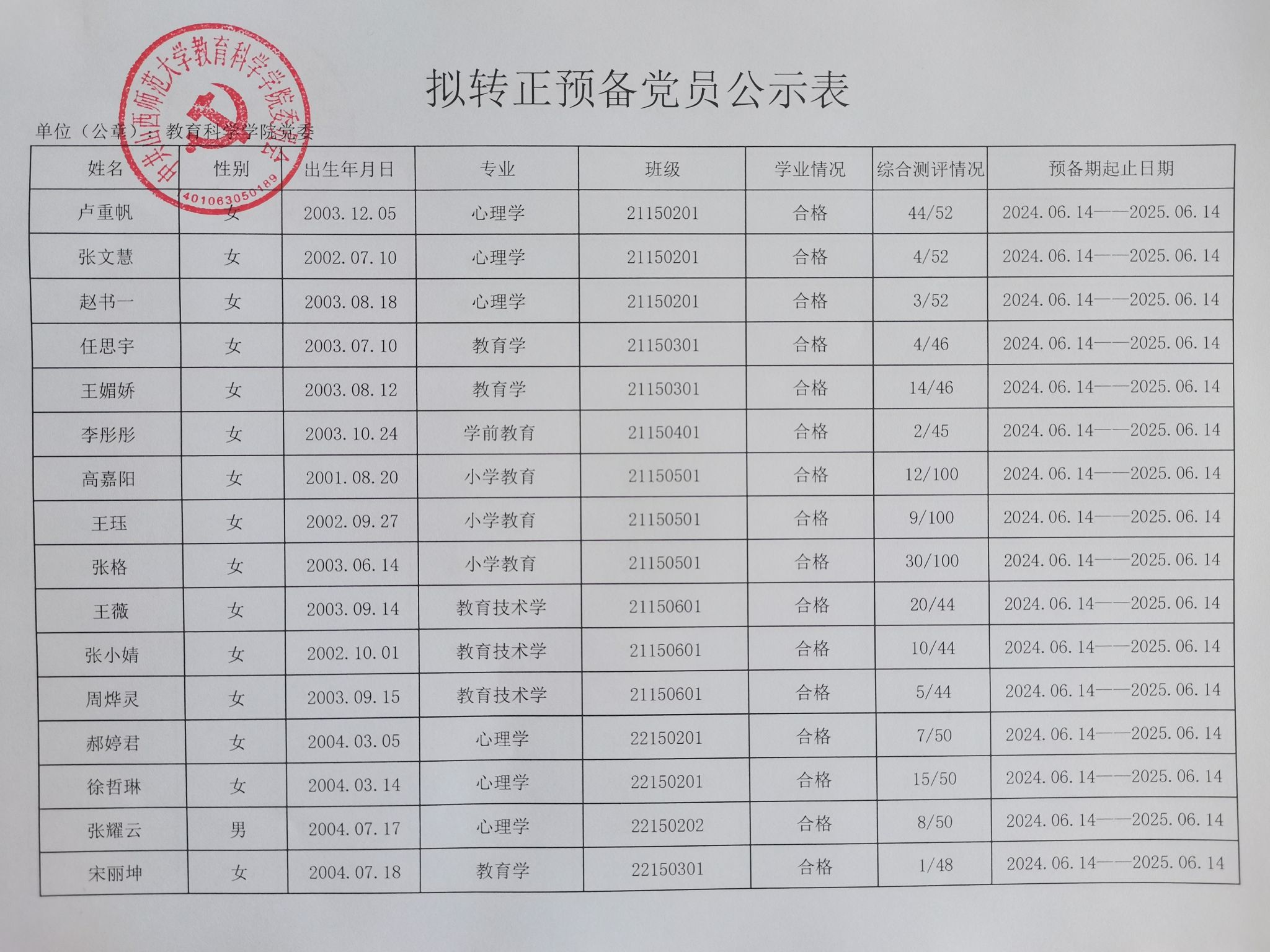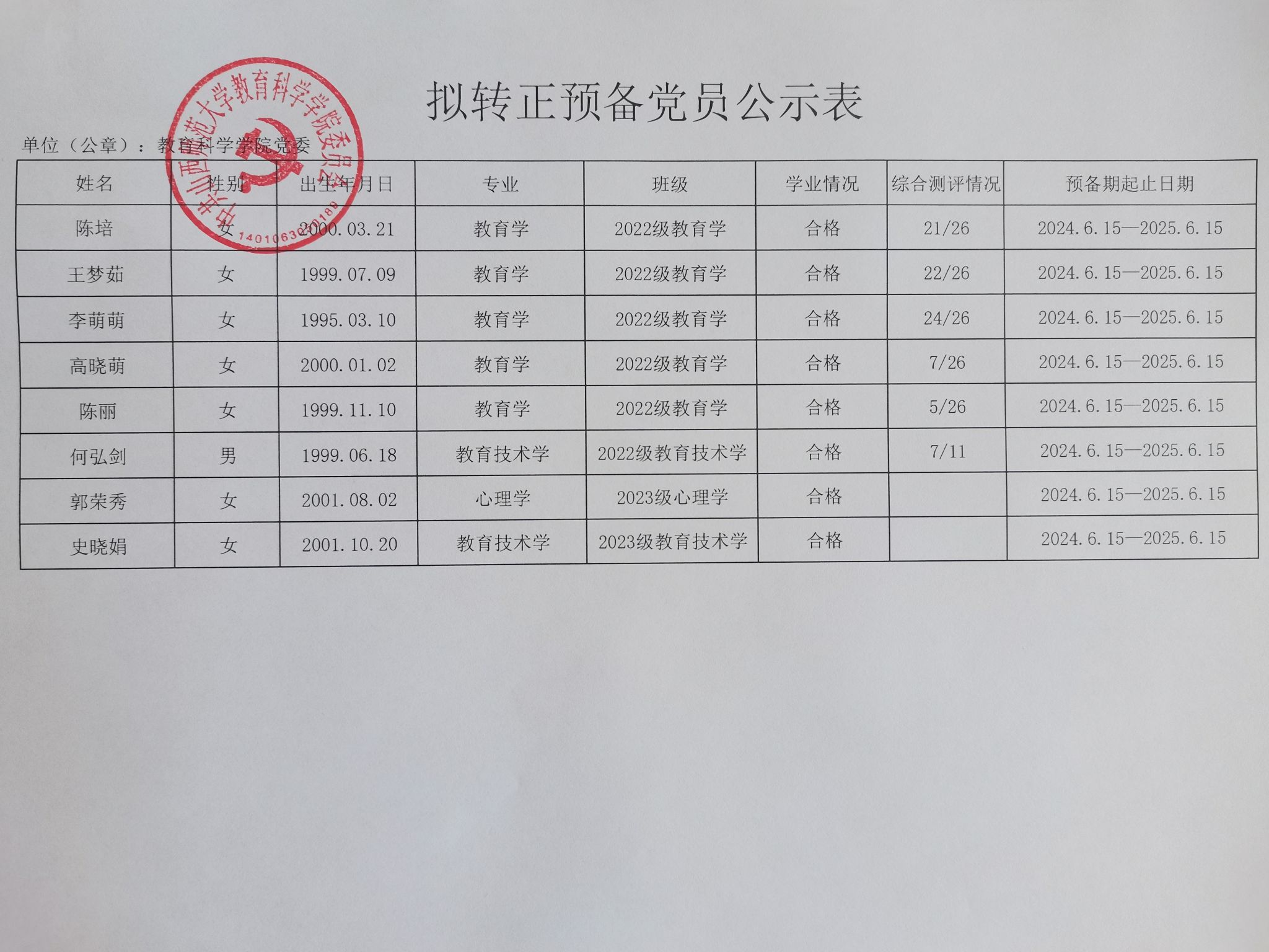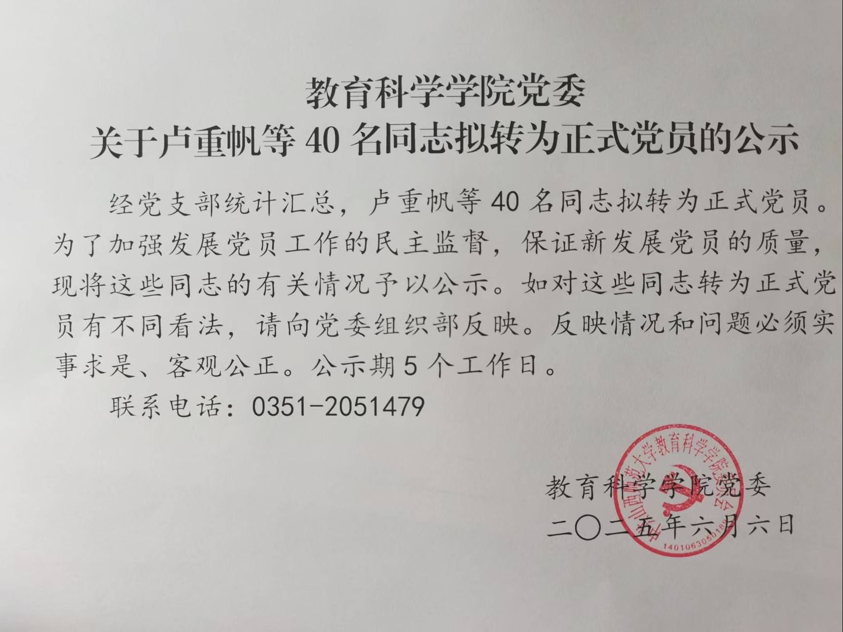 关于卢重帆等40名同志拟转为正式党员的公示