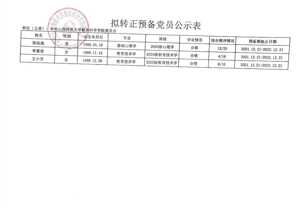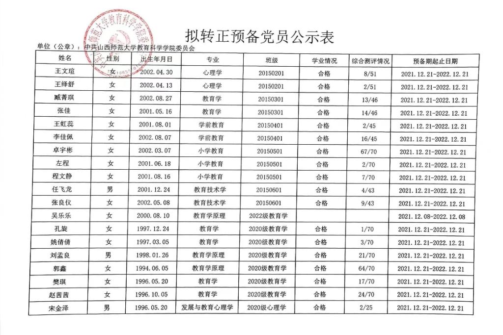 关于王文瑄等22名同志拟转为正式党员的公示