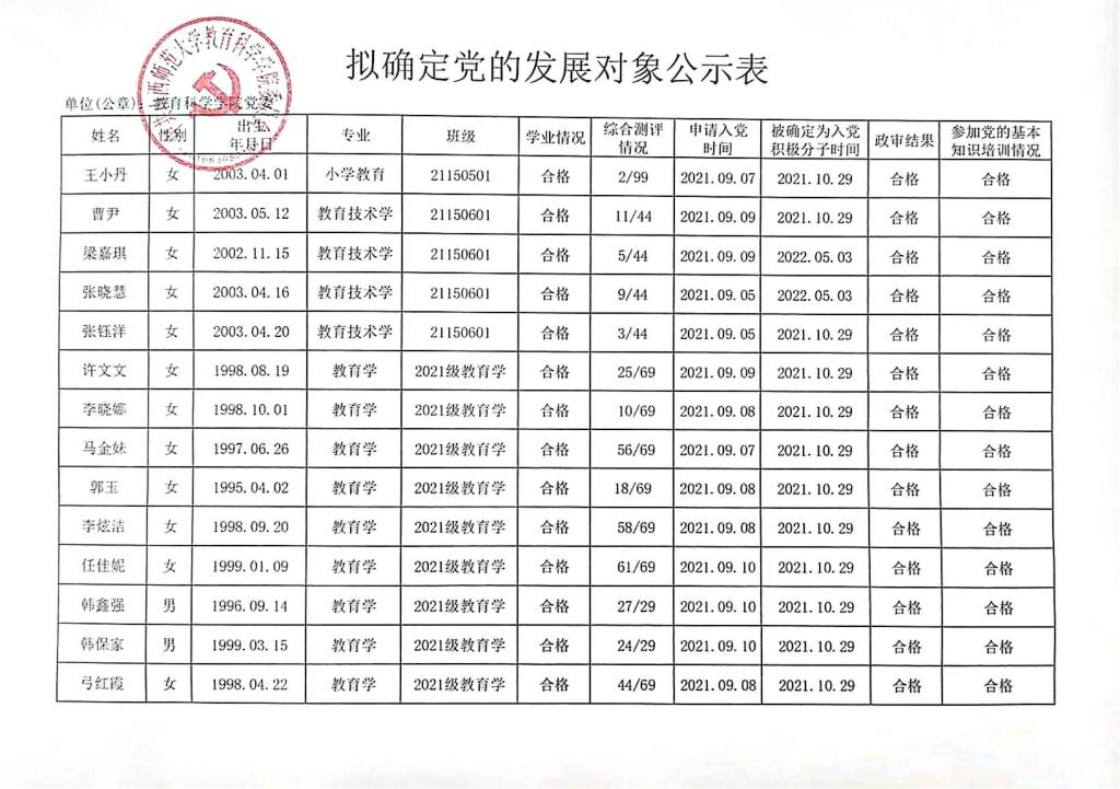 关于确定郝欣怡等51名同志为党的发展对象的公示
