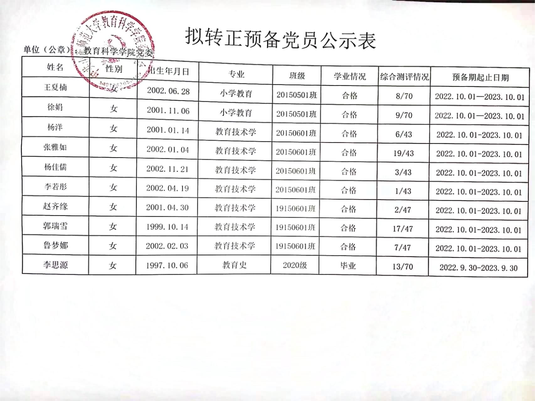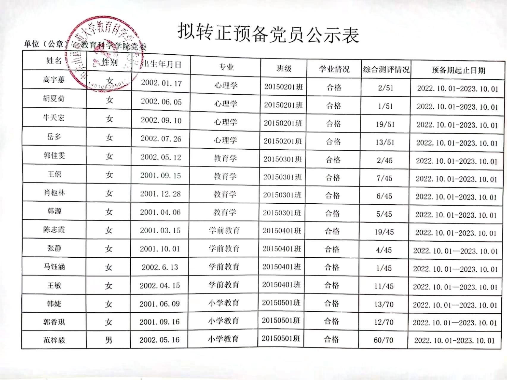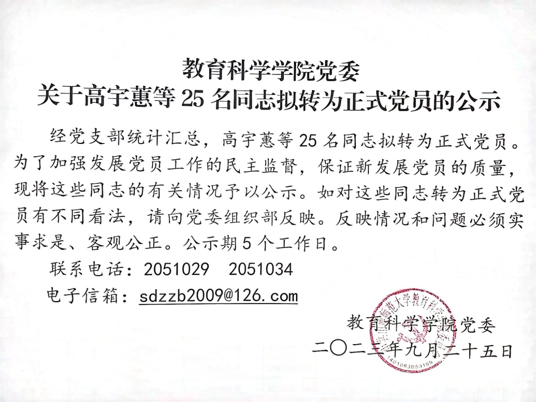 关于高宇蕙等25名同志拟转为正式党员的公示