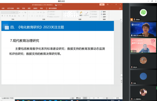 郭老师的报告内容分为四部分。第一部分从引领完善教育技术学科体系发展和聚焦解决现实问题两个方面阐述了《电化教育研究》期刊的职责;第二部分介绍了《电化教育研究》的选文标准,重点阐述了选文的角度和关注点,如学术创新程度、论证完备程度、难易程度等;第三部分详细说明了期刊论文写作的基本要求,包括论文的题目、摘要、研究描述、量化研究的范式、质性研究的范式等,结合具体案例剖析了常见问题,并给出了中肯的建议;最后分享了《电化教育研究》期刊2023年的选题重点,即教育信息化、智能教育、大数据教育应用、学习环境开发与应用、网络教育创新、技术促进公司产品变革、现代教育治理研究、国际比较研究等。