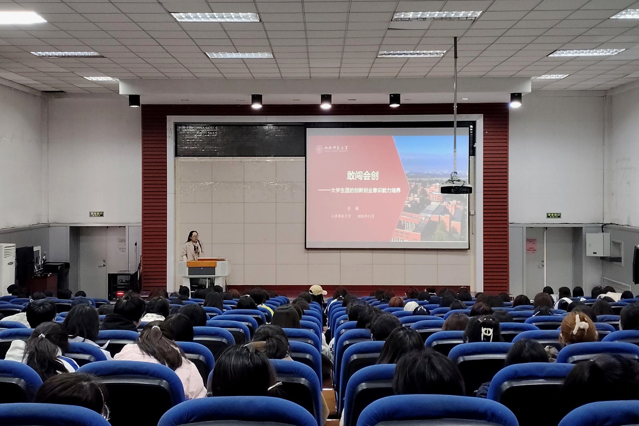 创新创业指导中心教师李硕围绕创新创业赛事的申报流程、选题逻辑、赛道分析以及计划书撰写等方面展开了详细讲解。她把理论知识融入项目实际操作案例,以往年的优秀项目作为参考,剖析备赛的核心要求。讲座现场互动积极、气氛热烈,同学们纷纷表示受益匪浅。