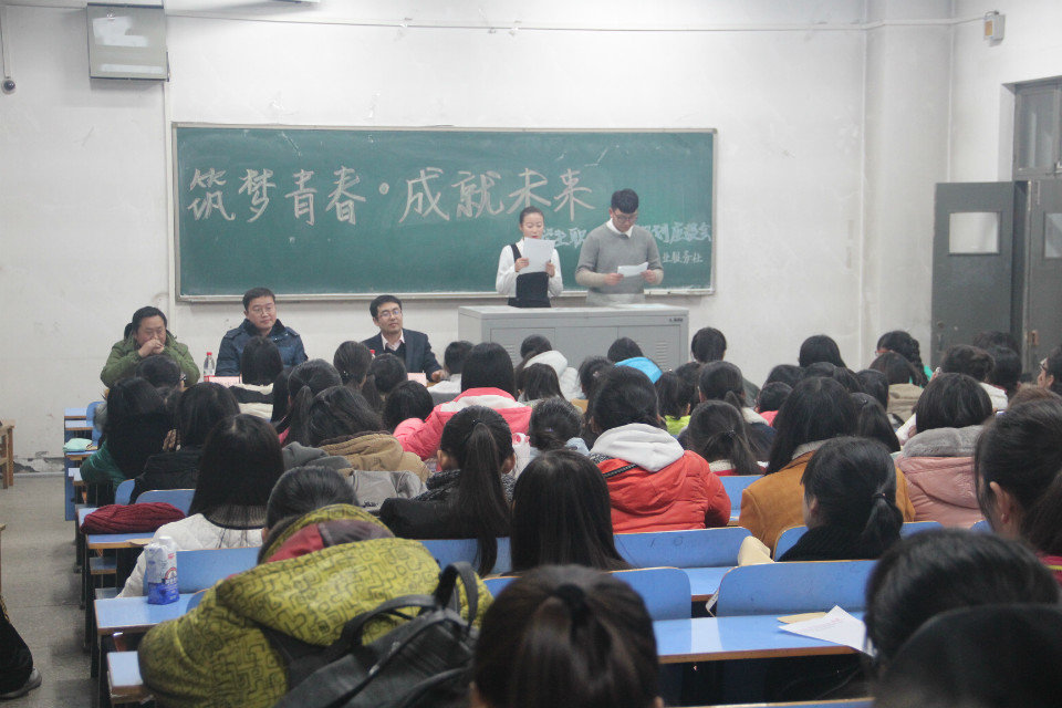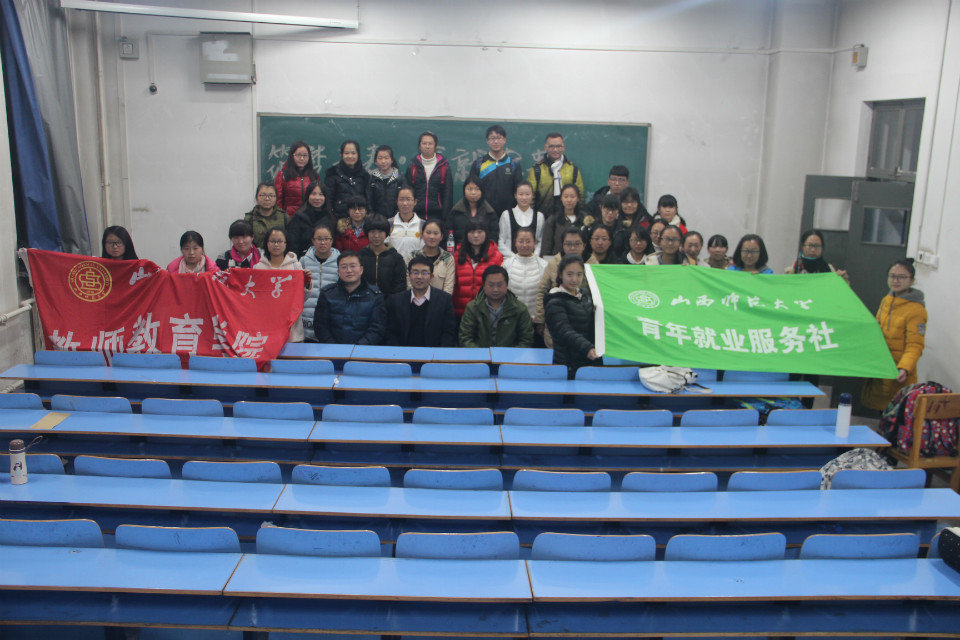 11月25日晚7点,公司青年就业服务社在10106教室举办了主题为“筑梦青春•成就未来”的老员工职业生涯规划座谈交流会。公司教育系的陈富老师、心理系的仝文老师、学前教育系的曾庆秦老师参加了本次活动并与同学们进行了交流。公司全体2016级新生及大二部分员工代表参加了交流会。