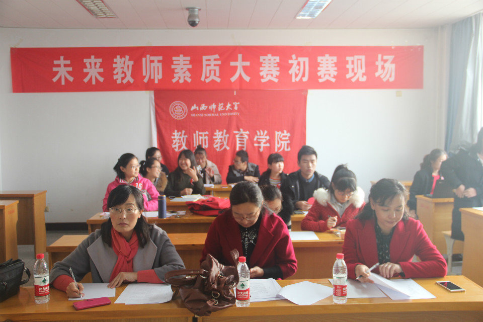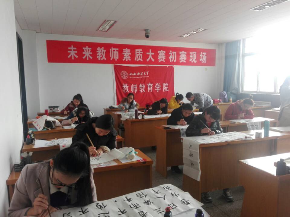 本次未来教师素质大赛共设计四个竞赛环节:“三笔字”、“教学设计”、“主题演讲”、“课堂教学”。12日上午,参赛选手进行了“三笔字”的比赛,内容采用现场书写的形式,在规定的时间内进行钢笔字和毛笔字及粉笔字的书写,由工作人员统一整理并记录;12日下午,参赛选手们通过现场抽取教材内容的方式进行了教学设计环节的比赛,内容按照课程标准进行一课时的教学设计,包括教案设计与课件制作两项,要求参赛选手要结合教材内容,综合运用Powerpoint和Flash等相关软件展示教学基本技能。