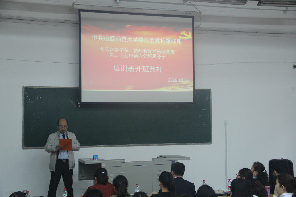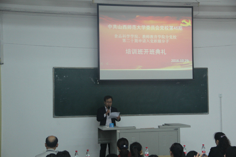 10月29日上午8点,食品科学学院和公司在05202教室联合举办了分党校第二十期申请入党积极分子培训开班典礼。食品科学公司党委书记亢俊红、党委副书记童保庆和公司党委副书记王银、副经理张潮、团委书记宁志恒等领导和老师出席了此次开班典礼,参加开班典礼的还有两个学院共计122名入党积极分子。