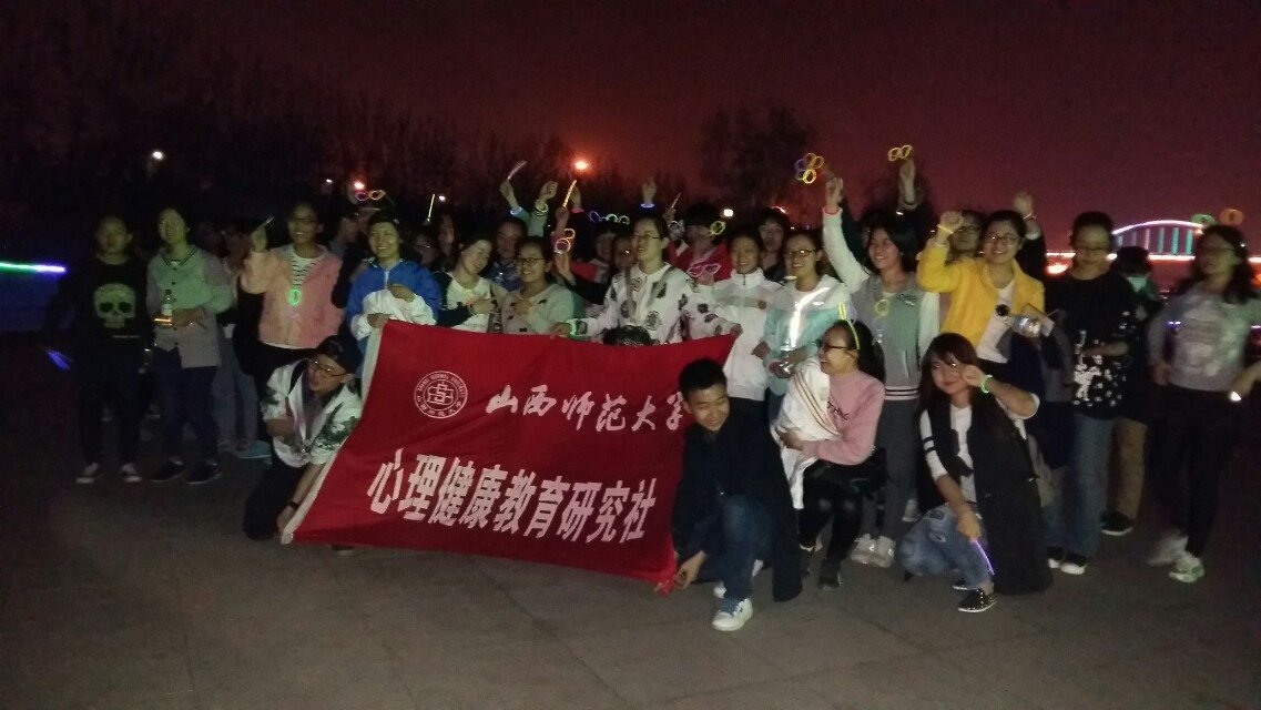 2016年3月19日晚上七点,公司心理健康教育研究社在汾河公园举办了荧光夜跑活动,心研社的干事和社员们参加了本次活动。