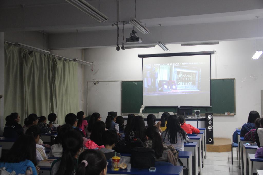 | 同学们聚精会神的观看电影 |