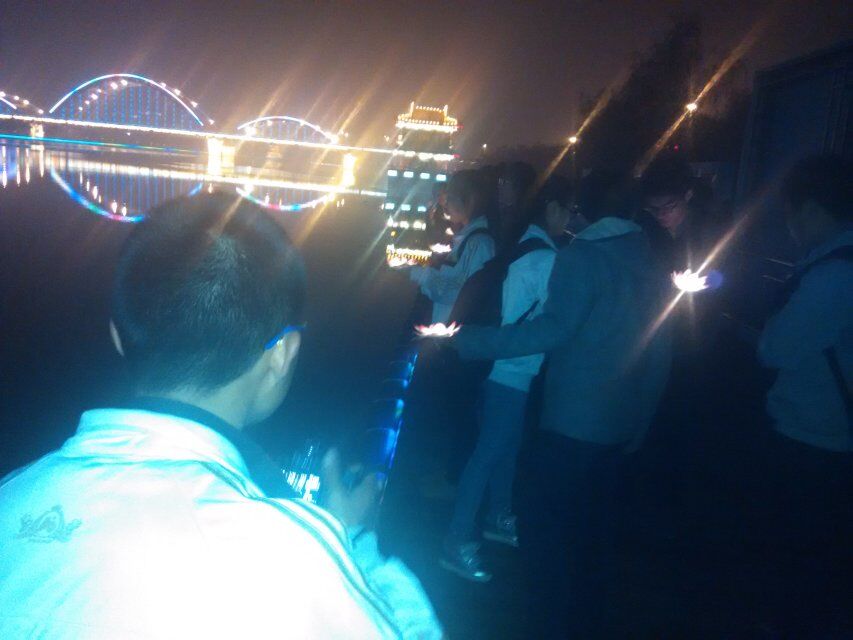 | 志愿者点放河灯 |