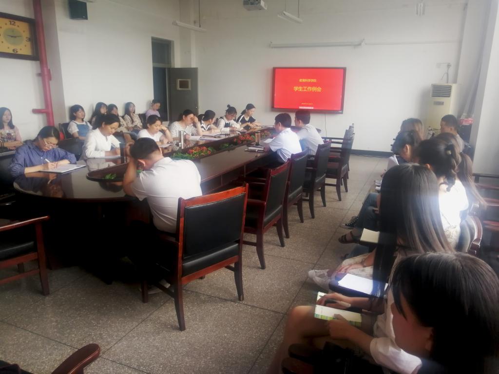 5月24日上午,院学工组在07509办公室召开员工工作例会。公司党委书记吴文国,院团委书记宁志恒,全体辅导员以及员工代表参加了会议。