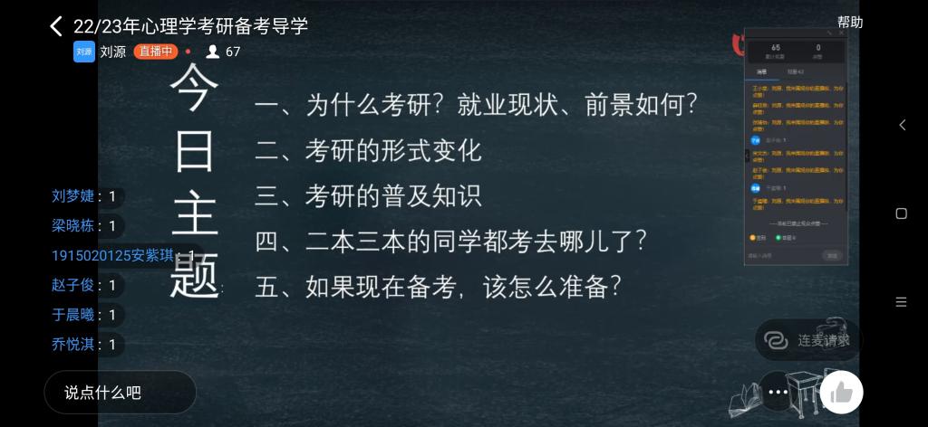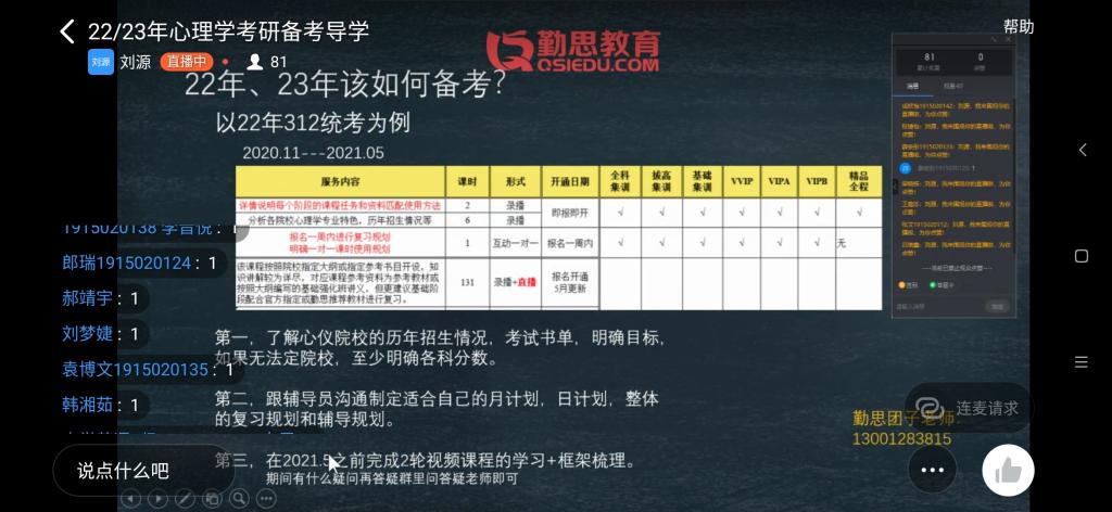 11月21日至11月22日,公司在钉钉直播平台举办“星光不负赶路人”考研知识讲座,勤思考研机构的专业导师担任主讲。此次活动由外联部承办。