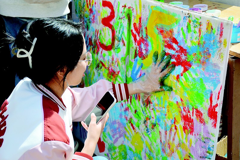 活动现场,同学们相继参加了幸运大转盘、连连看问答、二选一快问快答、DIY掌印画等游戏环节。在DIY掌印画环节中,参与的同学戴上一次性手套后,将双手涂满颜料,将自己的手印拓在画布上,共同绘制“3·15维权倡议书”,共同参与到3·15消费者维权活动中。