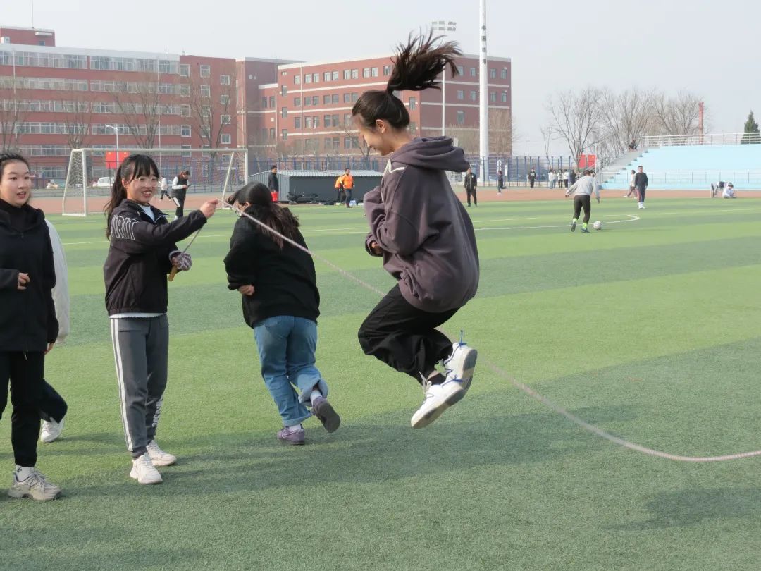 清晨的阳光冲刷着红色的跑道,同学们在操场上跃跃欲试,矫健的步伐奔跑出老员工的青春之路,健走两千米的艰难任务在大家的共同努力下变得轻松愉快。摇曳的大绳下同学们团结一致,心有灵犀,在一起一跳的默契配合中完成了接力挑战。同学们互相鼓励支持,此起彼伏的欢声笑语萦绕在操场上空,在同学们的祝贺声与呐喊声中,本次活动圆满落幕。