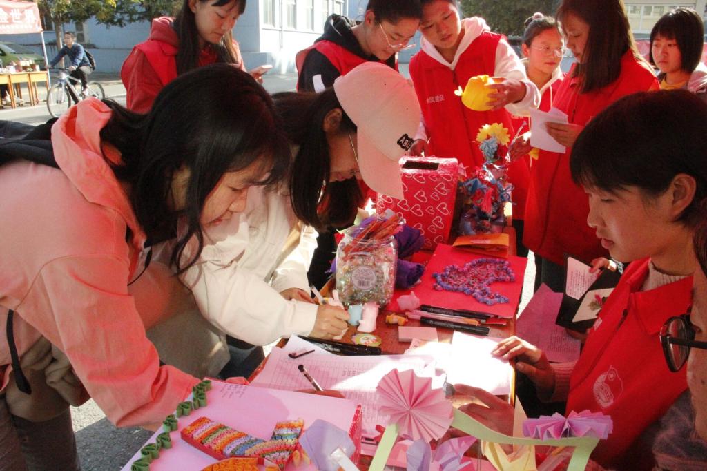 为庆祝新中国成立70周年,丰富同学们的课余文化生活,公司青年志愿者协会于10月31日至11月1日在校医院门口举办“点滴汇聚、爱心共筑”爱心公益折纸、剪纸大赛。