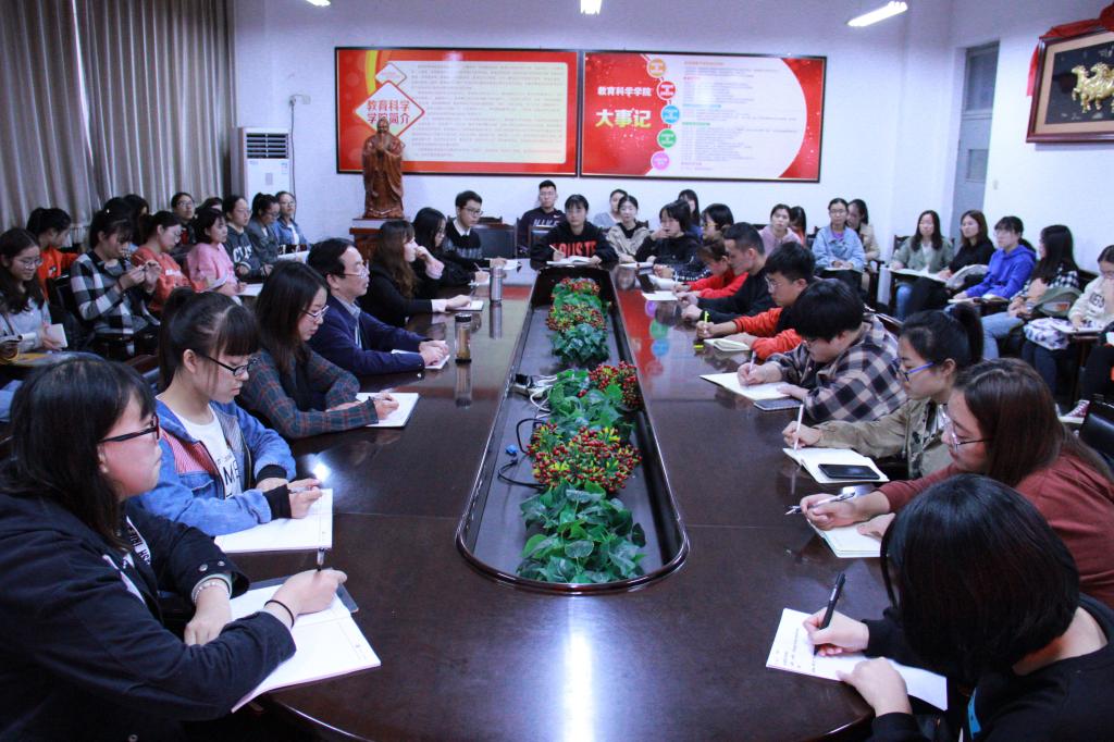 吴文国在讲话中指出,今天的“不忘初心、牢记使命”专题调研,就是要进一步广泛征求意见,认真思考提炼,集中力量提升学院员工党建和思政工作的水平,落实高校“立德树人”的根本任务。他指出,大家发言很积极,而且也提出了很多有建设性的建议。针对老员工思想政治教育,他指出,一要做强做大“三信教育”大讲坛,在强化理想信念教育上取得新成效。大讲坛采取“主讲+互动”的讲坛形式,广泛开展宣讲教育活动,加强思想舆论引导,坚定同学们对马克思主义的信仰,对中国特色社会主义的信念,对实现中华民族伟大复兴中国梦的信心,努力打造同学们喜闻乐见的思想政治教育平台。二要强力打造“互联网+”教育新模式,在唱响网上主旋律上创造新业绩。打造“三微一网”网络新平台,即微博、微信平台、微信群和学院网,努力实现党建和思想政治教育“五大转变”,引导师生积极参与,在青年员工党团骨干中凝聚一批网络生力军,培育一批网络引导员,共同参与网络育人。逐步构建起课内与课外、校内与校外、立体化、跨时空、零距离的网络思政教育互动空间。三要努力打造“金课”,在实现“课堂思政”的工作目标上做出新贡献。要团结和引领广大教师挖掘专业课中蕴含的德育资源,精准对接学校课堂教学改革项目,打造“思想引领示范课”,把育人元素“润物细无声”地渗透于专业教学的过程中,逐渐实现“课堂思政”的要求,使专业课堂呈现“德育味道”。四要发挥心理学和“心研社”专业优势,在心理健康教育上呈现新气象。
