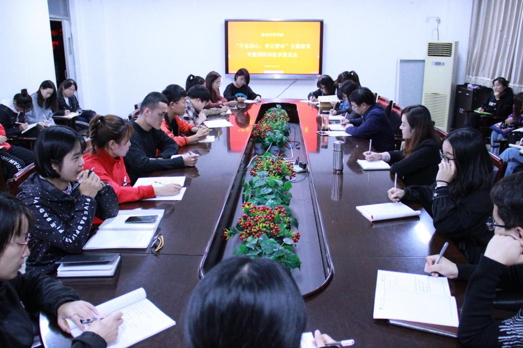 10月9日下午,公司召开“不忘初心、牢记使命”主题教育专题调研和征求意见会。公司党委书记吴文国、党委副书记高霞,专职辅导员周颖,心研社党支部党员代表、学院八个社团的社长及成员代表、团委员工会的员工干部代表参加了调研。